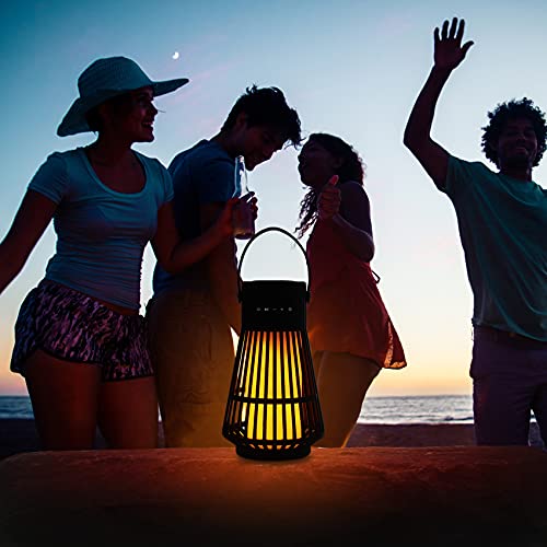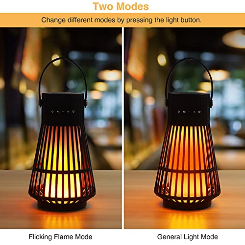 3 IN 1 vlamsfeer speaker: de draadloze led-luidsprekers zijn niet alleen luidsprekers, maar ook hangende lantaarns en nachtlampjes. Upgraded 120 LED’s zaklamp flikkeren prachtige dansende vlammen, niet zoals andere luidsprekers alleen 60,96 LED’s, Alle 120 LED’s flikkeren samen met warm gele lichten, vormen een prachtige vlam, bootsen extreem realistische en natuurlijke dansende vlammen, gecombineerd met geweldige audiofunctie, om een romantische sfeer te creëren voor uw tuin, feest en camping.