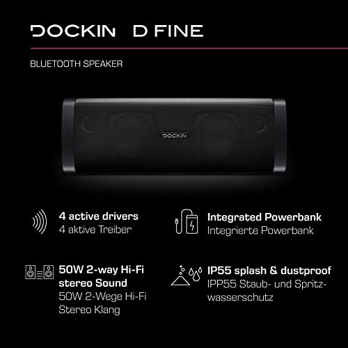 Specification: DOCKIN D FINE Hi-Fi Bluetooth Speaker – luidspreker voor indoor/outdoor, draadloos, eenvoudig draagbaar, waterdicht, 50…