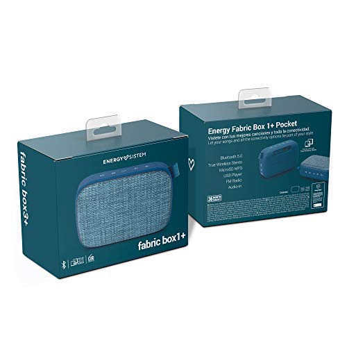 Draagbare Bluetooth 5.0 luidspreker en True Wireless Stereo technologie voor het aansluiten van twee luidsprekers tegelijkertijd. Bovendien beschikt hij over een MP3-speler over USB of microSD, FM-radio en audioin, zodat je je beste nummers kunt bekijken. + Audiosysteem 1.0 vermogen: 3 Watt luidspreker: 1 x 45 mm volledig breed-luidspreker passieve radiatoren: 1 x membraan aan de voorkant frequentiebereik: 100 Hz ~ 18 kHz THD <1% + Bluetooth versie 5.0 en klasse II Tot 20 meter bereik ondersteunt Bluetooth-profielen, HFP / A2DP / AVRCP werkfrequentie: 2,4 GHz (2402) Hz 2480 Hz) Maximaal signaalvermogen: <20 dBm handsfree functie. Microfoongevoeligheid: 42 dB TWS-technologie (True Wireless Stereo) + TWS compatibel met Energy Fabric Box 1+ Energy Fabric Box 3+ + ANALOGISCHE indoor audio-ingang met 3,5 mm jack + DECODIFICADOR externe microSD en USB met capaciteit tot 64 GB ondersteunde audio-formaten: WAV/MP3-radiosysteem + ondersteunde FM-frequentie: 8 MP. + ALIMENTATIE aansluiting op het micro-USB-apparaat 5 V kabellengte van de meegeleverde oplaadkabel: 50 cm + batterijcapaciteit: 500 mAh type: Li-polymeer gebruiksduur: tot 5 uur oplaadtijd: 1,5 uur