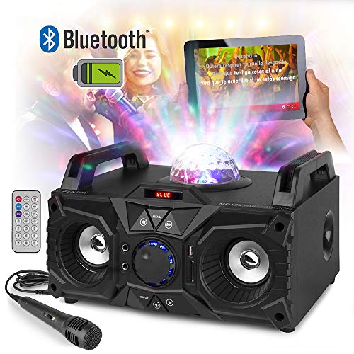 Specification: Fenton KAR100 Draadloze Bluetooth Party Speaker 150 Watt met Ingebouwde Accu, ingebouwde Discolamp, Microfoon, LCD…