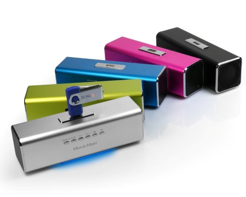 Beschrijving: draagbare MusicMan-stereoluidspreker met geïntegreerde accu voor maximale mobiliteit. De geïntegreerde MP3-speler ondersteunt de muziekweergave van vele apparaten. Het makkelijkst is het om een USB-station aan te sluiten of een microSD-kaart in te voegen. Andere opties zijn de verbinding met MP3, CD, DVD, iPhone, iPad, PC, mobiele telefoon enz. Er is ook een FM-radio. Specificaties: ingebouwde FM-radio + line-in / AUX (3,5 mm analoog) Robuuste aluminium behuizing in 5 kleuren verkrijgbaar, Ingebouwde batterij – Lithium 600 mAh, batterijduur tot 8 uur, opladen 3-5 uur, ondersteunt USB, microSD-tot 32 GBFM-antenne 3,5 mm (audiokabel dient als FM-antenne) USB-opladen (voeding niet meegeleverd) Vermogen: RMS 6W W + 3 W) Frequentie: 150 Hz – 18 kHz (± 3 dB)Gewicht: 185 g Afmetingen: 165 x 50 x 52 mm Verpakkingsinhoudluidspreker MusicManUSB, stroom- en audiokabelhandleiding (mogelijk niet beschikbaar in het Nederlands).