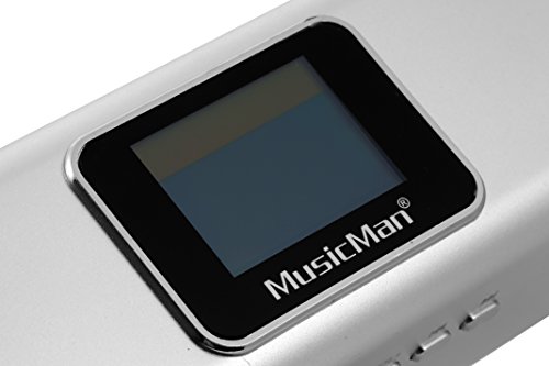 Het display (128 x 32 mm, sw/wit) toont muziektitel, nummertekst, afspeeltijd, totale tijd, EQ, klok, datum, wekker en meer