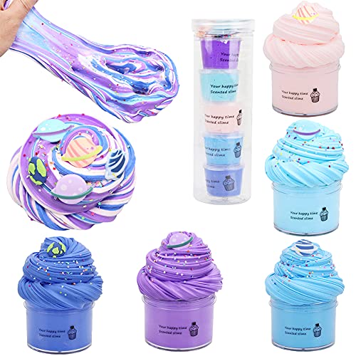 SWZY Planet Slime, Butter Slime Set, Fluffy Slime, Putty slime, Children and Adult Stress Relief Toys 5pcs (Pink/Purple…